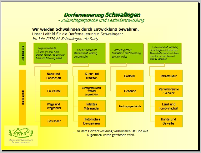 Unser Leitbild ist der gemeinschaftlich entwickelte, von Konsens getragene, Richtung gebende Rahmen für die Dorferneuerung Schwalingen.